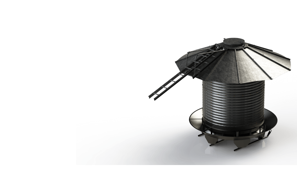 O Silo Auto Consumo possui um corpo inteiramente galvanizado, o que previne corrosão e ferrugem, tornando-o extremamente durável. Equipado com um sistema de ski para transporte fácil e sem esforço, esse silo tem uma capacidade de 5m³. Os cochos podem ser fabricados em aço inox ou aço carbono galvanizado. Um silo comedouro desse tipo atende a demanda de 100 a 130 animais adultos ou 150 a 180 terneiros, com consumo de 1% do peso vivo.