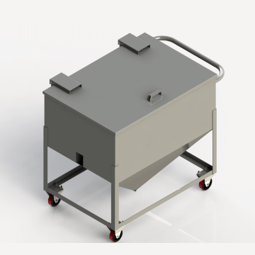 Empregado no transporte de resinas para alimentação de injetoras, extrusoras e outros. Possui tampa, entrada para caneta e porta de limpeza, podendo ser fabricado em aço carbono e aço inox.